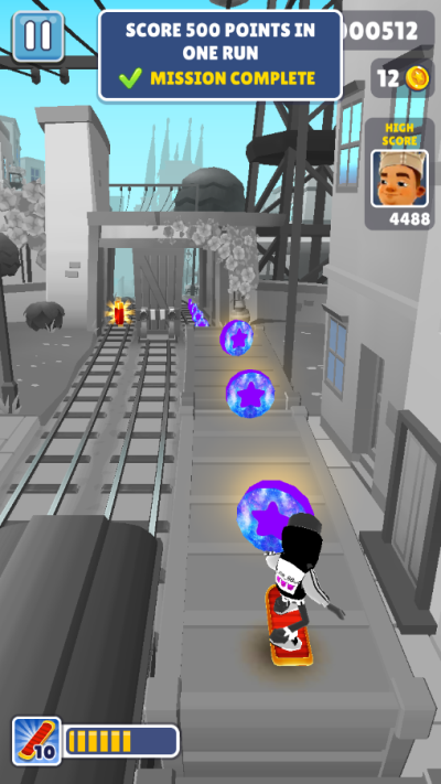 在游戏过程中双击屏幕,即可激活滑板(Hoverboard),在有效时间内拥有两条生命。滑板状态碰撞障碍只会消耗滑板而不会结束游戏,是突破高分的神器;