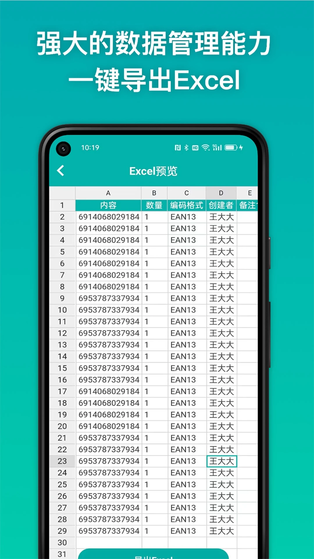 云端数据中枢:自动将扫描记录分类为产品库、文档库、网址库等,支持Excel/PDF格式批量导出
