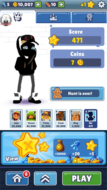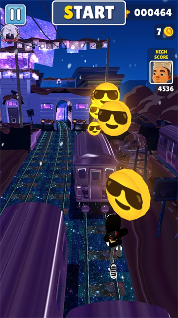 地铁跑酷宇哥4.0版本是一款经过精心定制的魔改版本,为玩家带来全新的视觉体验和游戏乐趣。游戏背景采用了梦幻的紫色星空设计,让整个跑酷过程充满浪漫与神秘感。原本的金币被替换成了独特的墨镜笑脸金币,配合星空主题,仿佛在浩瀚宇宙中自由奔跑。游戏操作依然保持简单易上手的特点,玩家只需通过上下左右滑动屏幕即可完成跳跃、滑行和切换轨道等动作,流畅的手感让跑酷体验更加畅快淋漓。