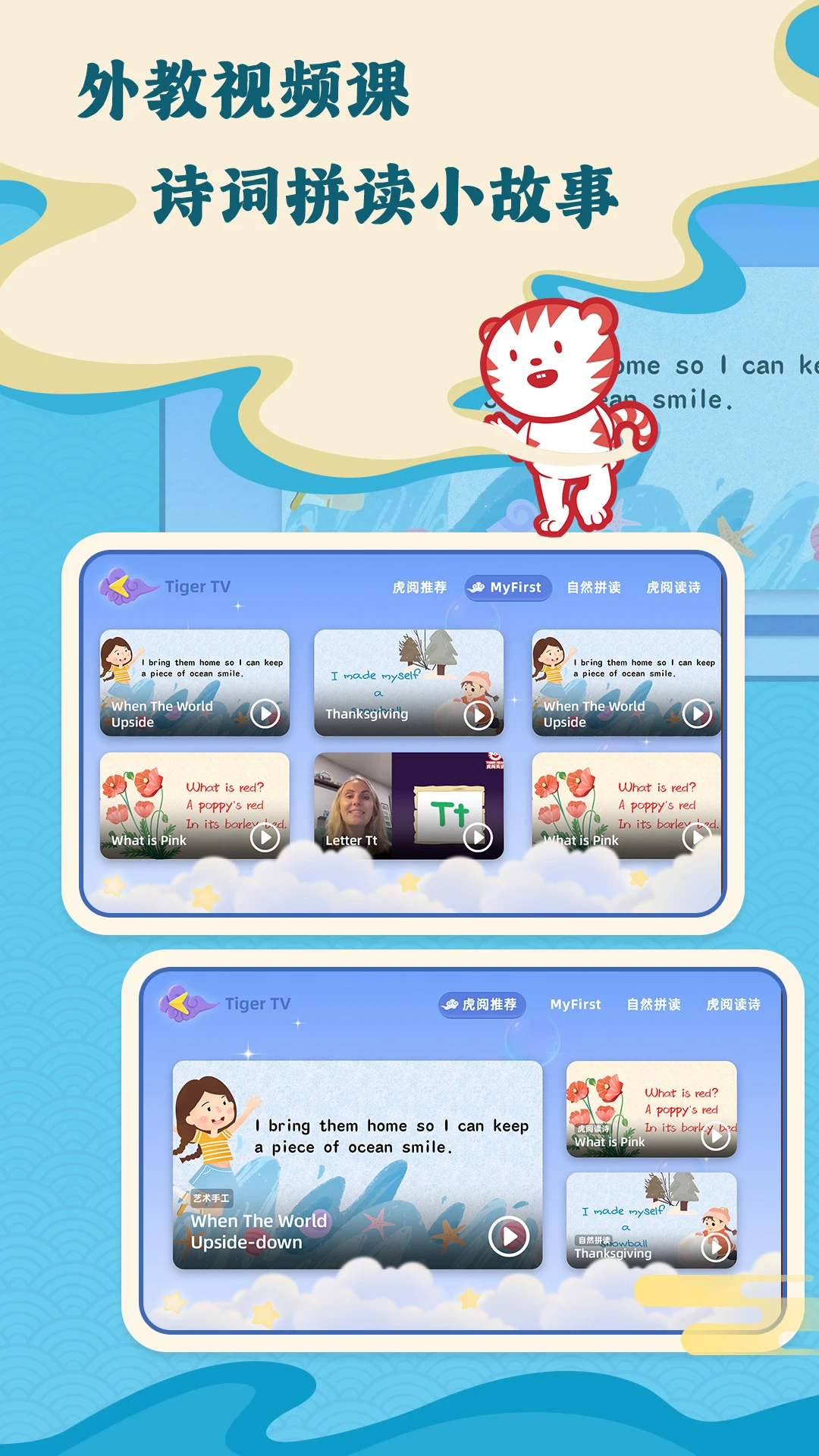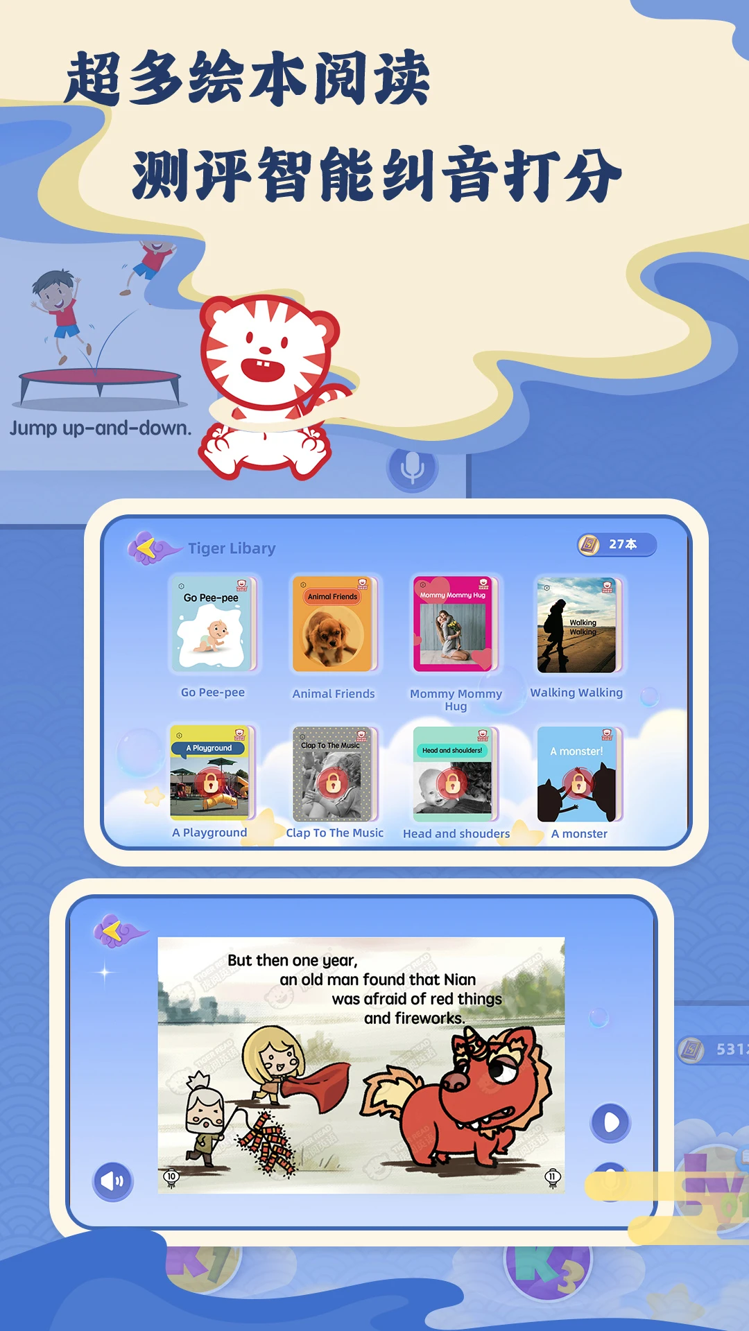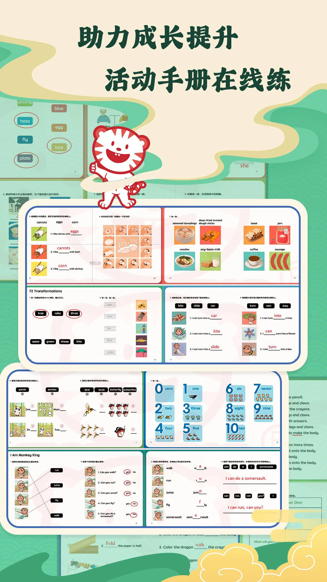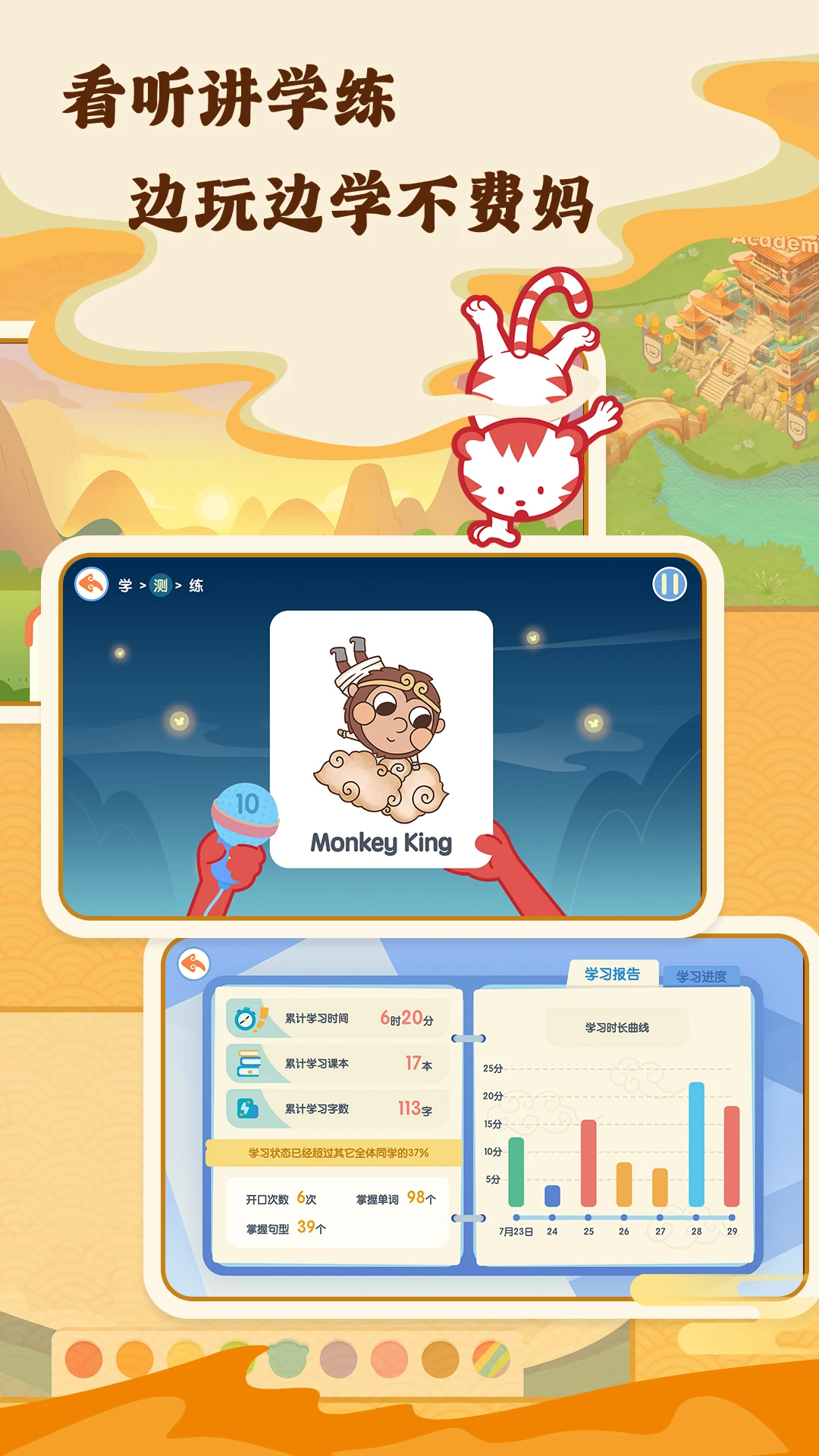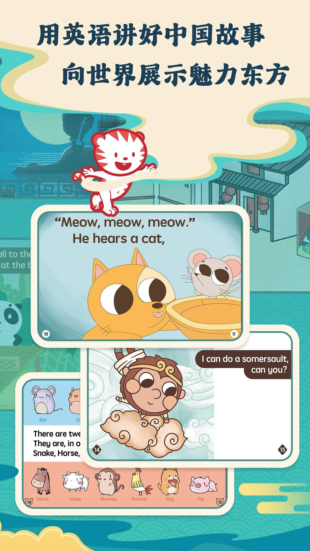 全互动中国风英语分级阅读内容,向世界讲述中国故事,内容丰富,题材广泛。从传统经典到现代生活;从民间故事到日常细节;家国情怀,国际视野!课文的绘画风格多样化,传统水墨、版画、水彩、工笔、写意、3D、照片等多种视觉方式,向世界展示新国风!共6个级别累计超过300本,每一本采用一个中国经典故事,形成一个课堂,通过14个关卡,从单词、句型、课文,通过看听讲学练,让孩子边玩边学,不用死记,不用家长教,趣味闯关,主动学习记更牢。App内包含超过500本课外绘本,支持在线听读,AI测评,让孩子自信表达。内容丰富广博,自叙文、描述、科幻、报告、论证、说明文体会语言之丰富与魅力,特别适合中国的孩子。App内包括超过400节外教视频课,专业的欧美外教+中教组合课堂素质与成绩双提高,包括古诗讲解,自然拼读,寓言小故事等。提供孩子的全学科阅读题材,通识教育,全球视野。支持手机、平板、学习机等多种设备类型。