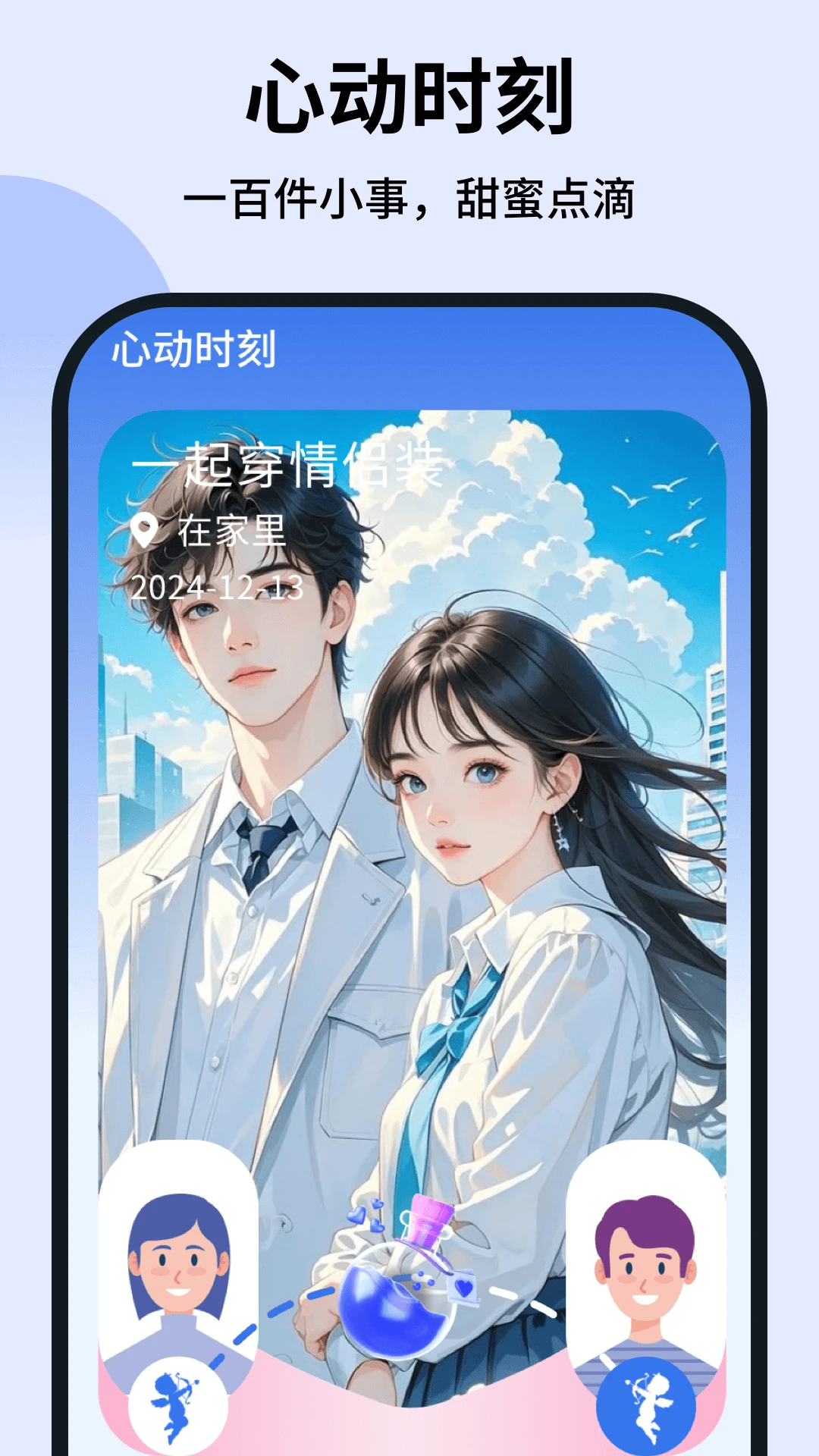 这是一款专为情侣打造的浪漫互动APP,致力于为爱情增添更多甜蜜与仪式感。通过创新的功能设计,它让情侣们能够轻松记录恋爱中的点点滴滴,从日常的小确幸到重要的纪念时刻。无论是异地恋的情侣想要保持亲密联系,还是朝夕相处的伴侣希望为生活增添浪漫色彩,这款APP都能成为爱情的贴心助手。独特的加密技术确保所有私密内容仅限两人共享,让每一次互动都充满安全感。在这里,爱情不再只是口头承诺,而是通过文字、图片和特殊日子的记录变得触手可及。