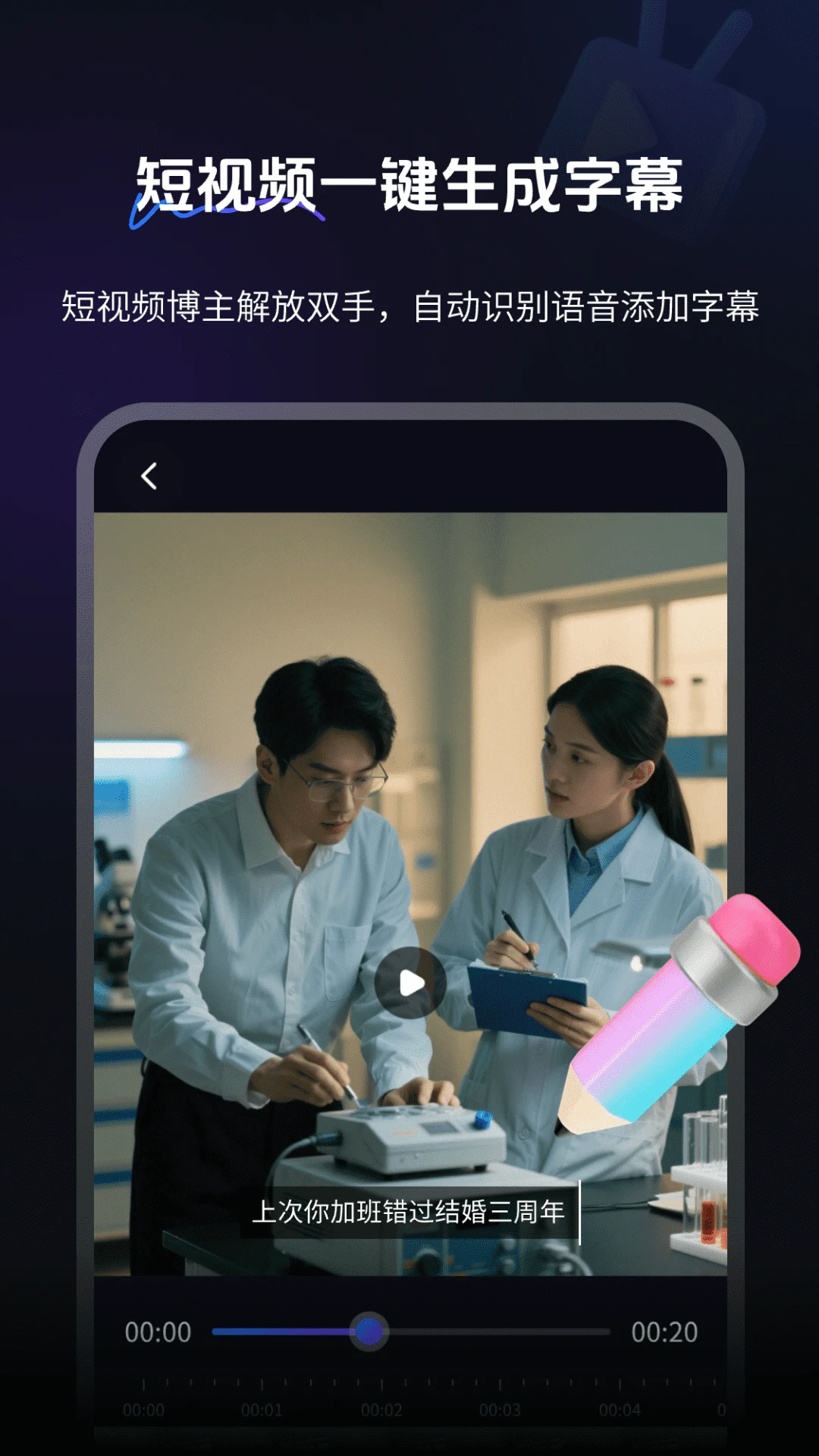 智能字幕识别功能,支持一键生成同步字幕,无需手动输入。