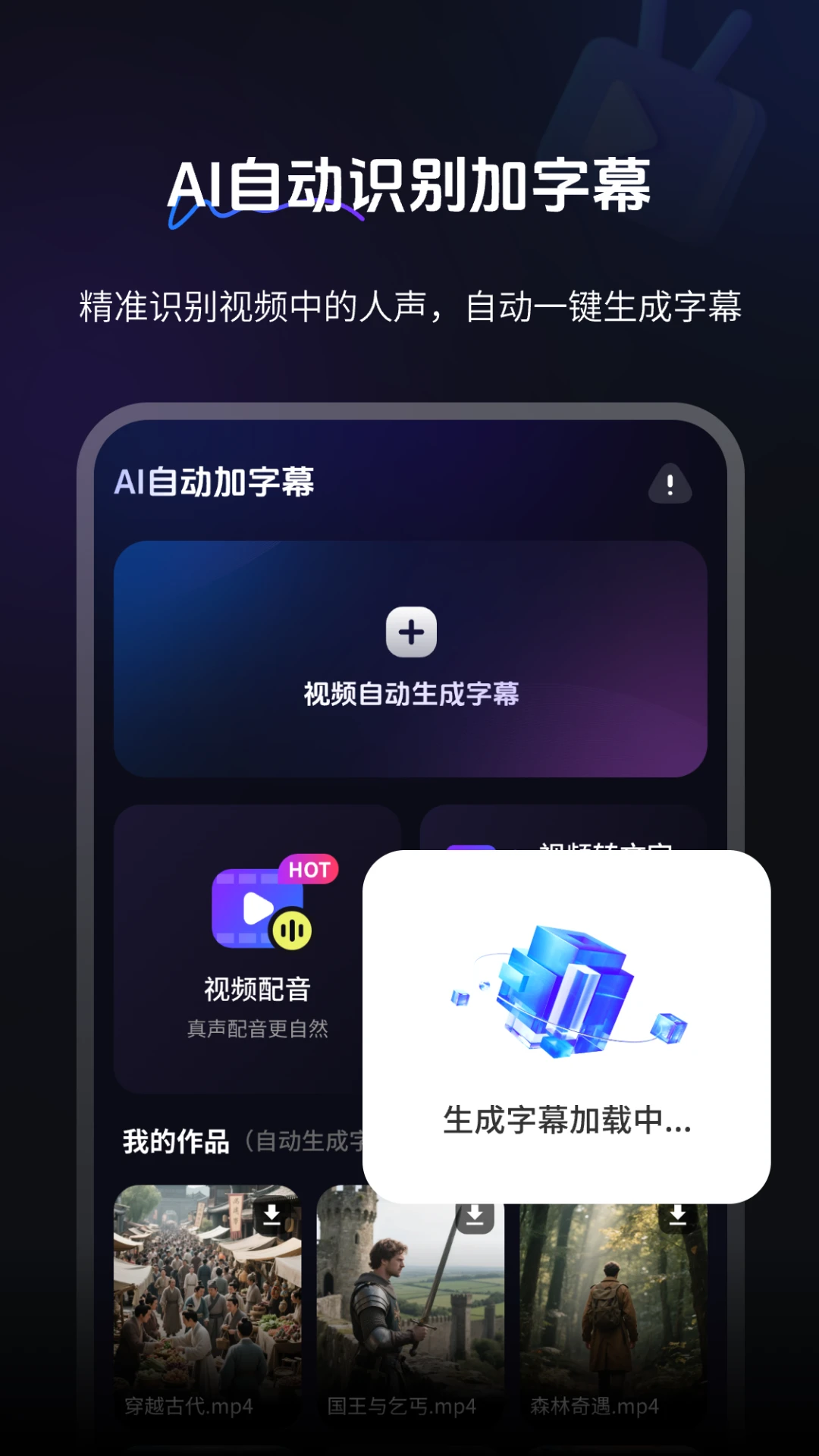 一款视频字幕、语音转换文字、录音转文字工具、视频配音软件。让配音、视频制作和音文字处理变得简单。【智能字幕识别】~告别手动输入!上传视频,一键智能识别视频内容并生成同步实时字幕,识别结果可编辑调整,还可以给视频加字幕,确认无误后可直接合成,省去额外操作步骤。~无论是口播/Vlog/课程讲解等多场合都能解决字幕难题,解放双手的好工具【多角色配音】内置百变声库,提供丰富的视频配音员选择,涵盖不同音色、语气等,同时支持音量、音调、语速的灵活调节,满足不同内容表达需求,打造符合您视频氛围的专业旁白,让你的视频更具表现力。【视频转文字】只需上传视频链接,便能自动提取视频中的声音与识别字幕,并将其转换为文字。无论是想获取视频中的台词、演讲内容,还是会议记录,都能实现无需逐字记录。【音频转文字】上传音频文件后,自动提取内容并转换为文字。不管是Podcast、访谈录音,还是个人笔记录音,都能转换,大大提升信息整理效率。无论您是视频创作者还是内容工作者,这款工具都能帮您:✓快速完成字幕制作✓丰富视频表现形式✓提升内容制作效率✓降低创作技术门槛让AI技术助