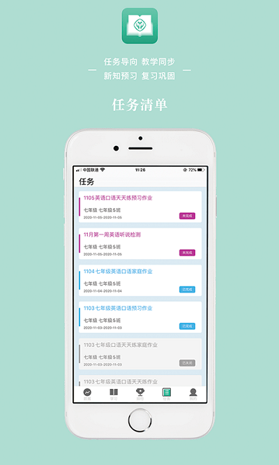在资源库、教学活动库等基础模块的支撑下,以英语学科人教数字教材为核心,为英语学科中小学师生和教学教研管理者提供备课、授课、课堂互动、师生交流以及教学管理等功能,支持课前、课中、课后多种教学场景应用的数字化教学平台。教师可以通过平台轻松布置作业,实时查看班级整体学习情况。