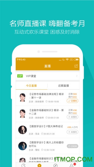 金融万题库每天都有免费的直播课,你可以随时享受惬意轻松的学习方式,不被时间和空间束缚,随时与老师、"同学"交流考试新的!即使你是0基础,我们也不愿让你感受到一丝学习的痛苦与压力。直播课程覆盖所有重要考点,由北京一线名师授课,确保教学质量。