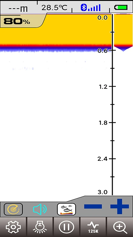 这是一款双频智能探鱼器APP,使用声纳探测水体深度、鱼群,并帮助您确定水底轮廓、组成和结构,能显示水底曲线,大小鱼群,水草以及水温等探鱼器相关信息。能够设置探测灵敏度,显示背景,刷新速度等各类参数。界面友好,操作方便,是钓鱼爱好者的好帮手。