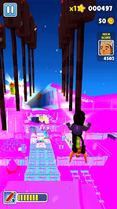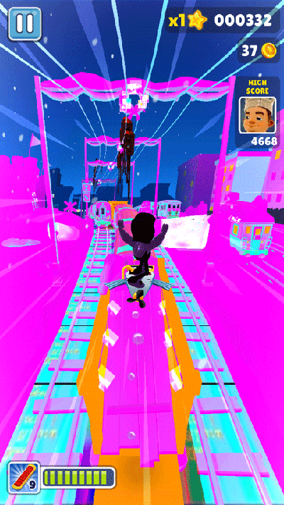 地铁跑酷路灯金币版本是一款在经典跑酷游戏基础上进行全面升级的创新作品。游戏以极具视觉冲击力的紫色霓虹风格作为核心设计元素,将原本普通的金币收集机制革新为独特的路灯金币系统,为玩家带来耳目一新的游戏体验。在这个充满未来科技感的版本中,玩家将操控角色穿梭于霓虹闪耀的都市轨道,在收集路灯金币的同时,还要灵活应对各种突如其来的障碍物,整个过程既紧张刺激又充满乐趣。