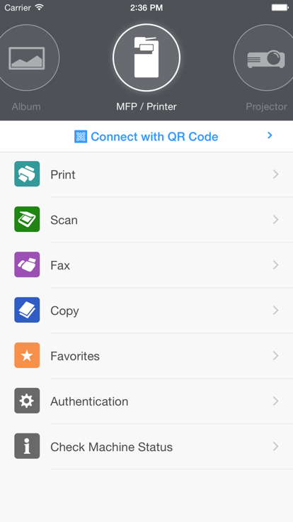 进入主界面,切换到【MFP/打印机】界面,点击【使用NFC连接】;