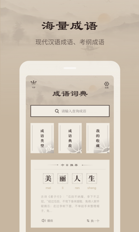成语词典官方正版是一款权威规范的成语学习工具,致力于为用户提供准确全面的成语知识。其界面设计简洁直观,操作流畅易上手,无论是查询还是学习都能快速完成。除了基础释义外,还融入了成语背后的历史典故和文化内涵,让学习过程更加生动有趣。无论是日常积累还是备考复习,这款工具都能成为你的得力助手。