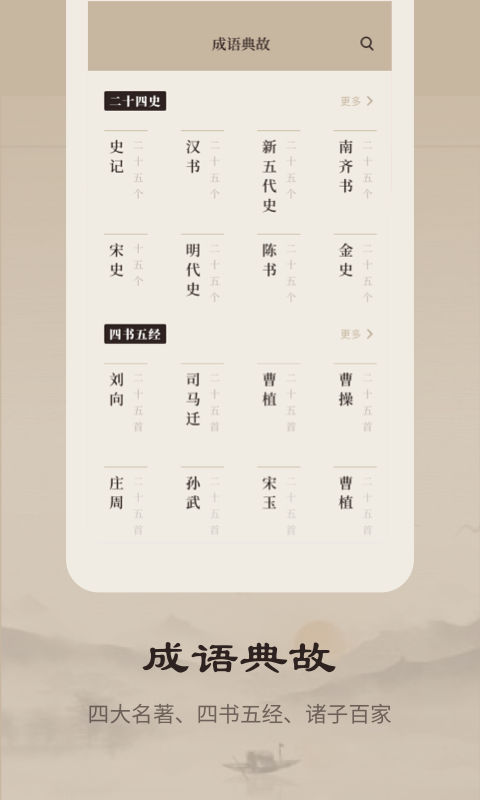 成语故事,了解学习各大名著如《红楼梦》、《三国演义》、《传》、《记》及其他《史记》、《四书五经》、《诸子百家》等文学作品中的成语。每个故事都配有原文摘录和现代文翻译,帮助理解成语的原始语境。部分经典故事还配有动画讲解,以更生动的方式呈现成语的来龙去脉。