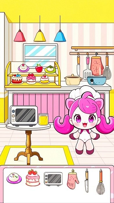 游戏中出现了十分可爱的女孩,你可在这里为她搭配专属的房间以及厨房等。角色形象生动活泼。