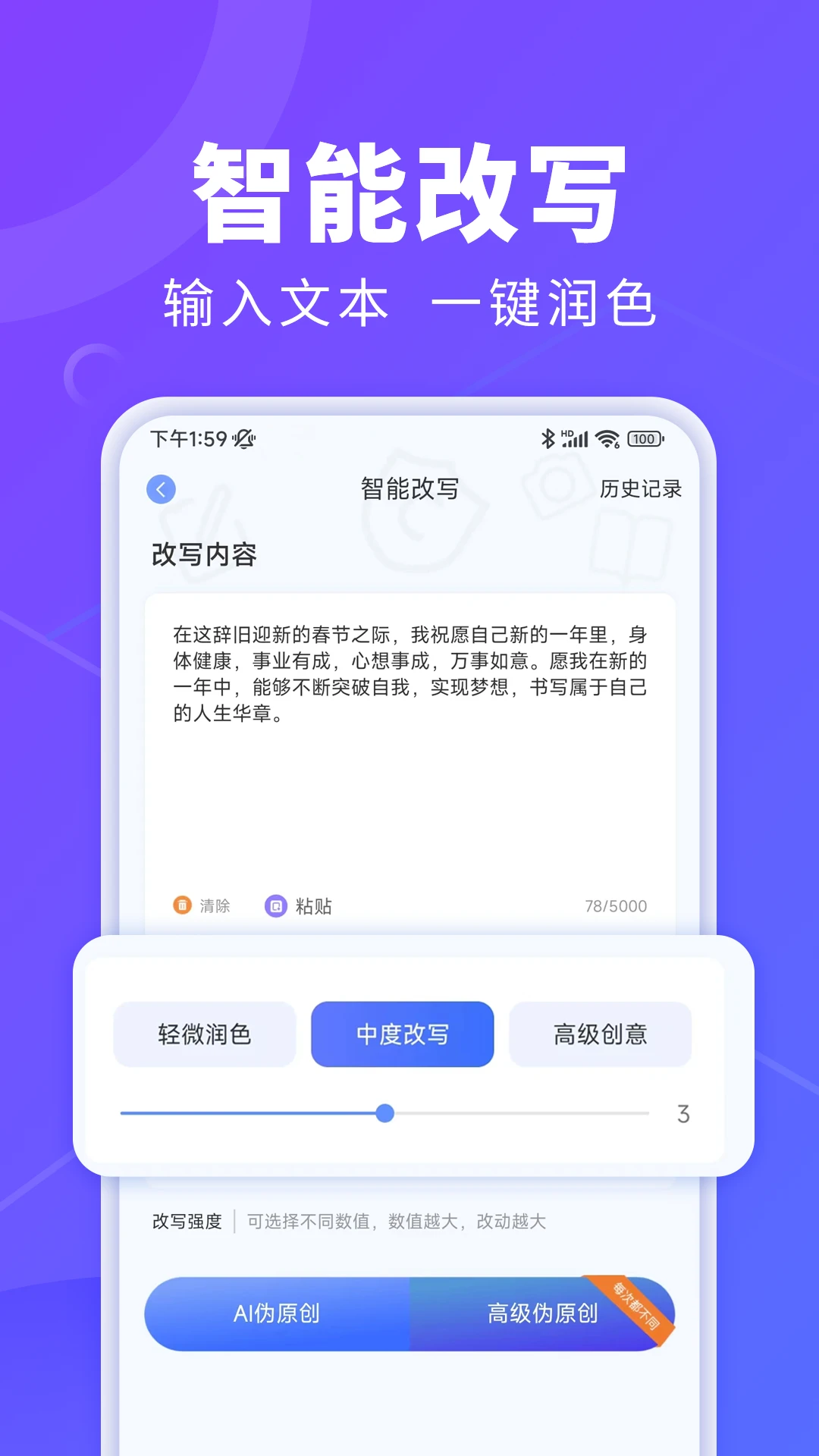 智能改写引擎可保留原文核心语义,实现7种不同风格的文本转换