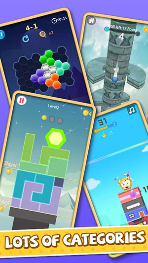 这款集合了数十款趣味益智游戏的合集堪称休闲娱乐的完美选择,不仅能有效锻炼您的思维能力,还能带来轻松愉快的游戏体验。从简单易上手的入门级游戏到富有挑战性的高阶谜题,满足不同水平玩家的需求。精美的画面表现和富有创意的游戏设计,让您在享受乐趣的同时也能获得智力提升。