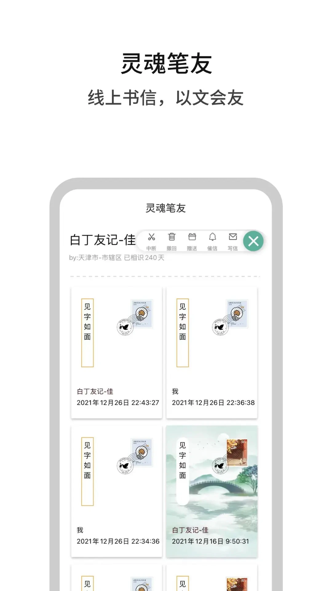 跨时区笔友通信,可设置1-30天不等的信件延迟送达机制