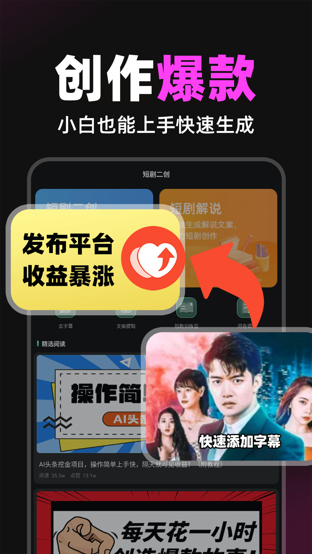 软件内置了海量素材库,包括背景音乐、转场效果、滤镜和贴纸等,用户可以根据剧情需求自由搭配,打造个性化的短剧作品。同时,软件支持一键导出高清视频,并可直接分享至各大短视频平台,帮助用户快速积累粉丝和流量。此外,软件还提供了详细的变现教程和资源对接服务,指导用户通过广告分成、付费订阅等方式实现收入增长。