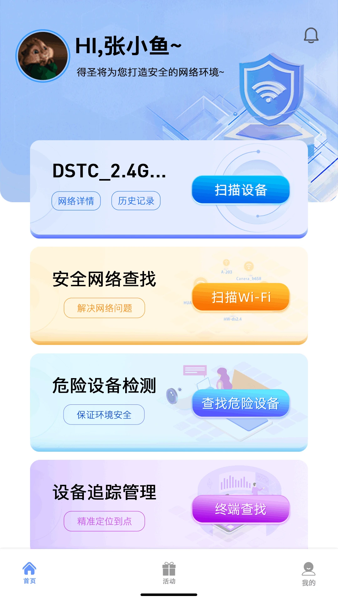 一键扫描:用户只需点击一键扫描功能,即可快速获取当前网络的安全状态,操作简单便捷。