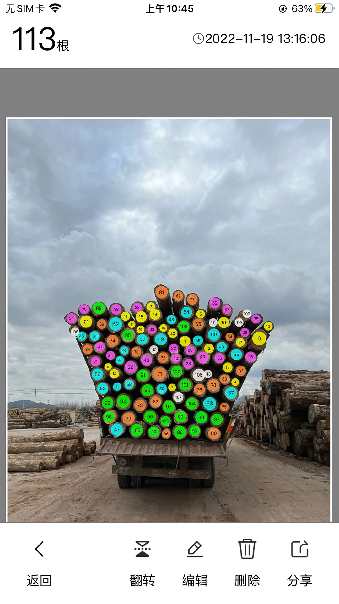 拍照计数功能:支持小堆原木或集装箱卸车场景,通过拍照快速识别并统计数量。