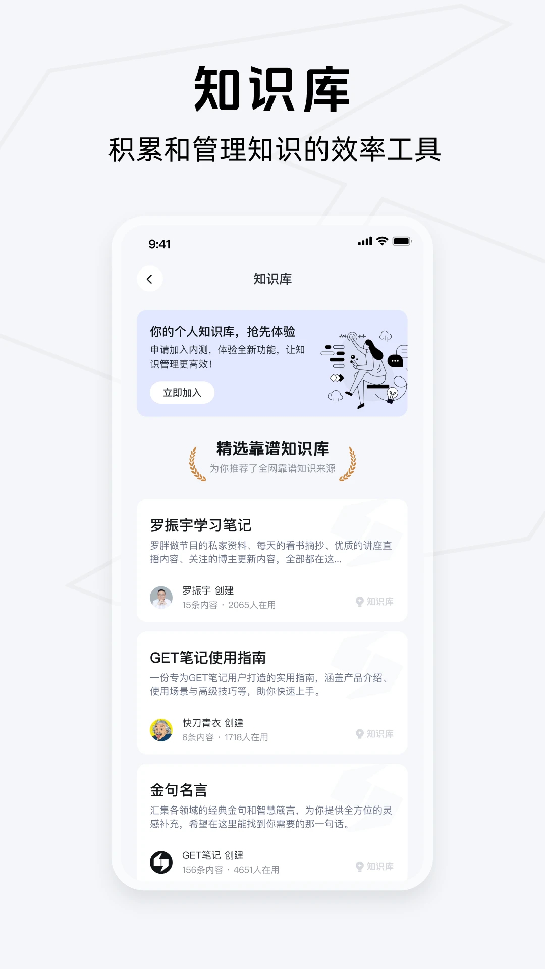 - 学习笔记:无论是课堂笔记还是自学资料,Get笔记都能帮助您高效整理和查找,提升学习效率。