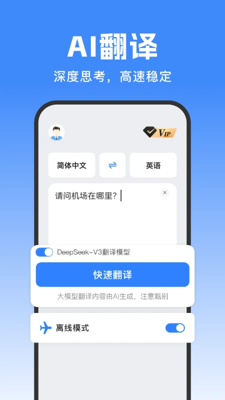 DeePAI极速翻译官是一款融合人工智能技术的智能翻译工具,致力于为用户提供高效、精准的语言转换服务。无论是日常文本翻译、专业文档处理,还是实时对话交流,它都能通过先进的AI算法快速响应需求,打破语言壁垒。支持多格式文档一键转换与同声传译功能,尤其适合商务人士、旅行者及语言学习者。其简洁的界面设计和智能续费管理,进一步优化了用户体验,让跨语言沟通变得前所未有的轻松。