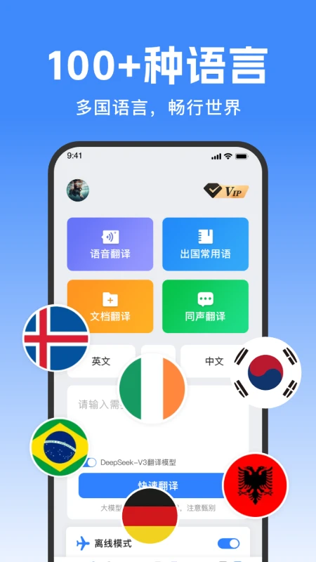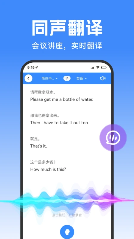 实时对话翻译:通过麦克风捕捉语音,自动识别语言并翻译为目标语种,支持双向对话模式。