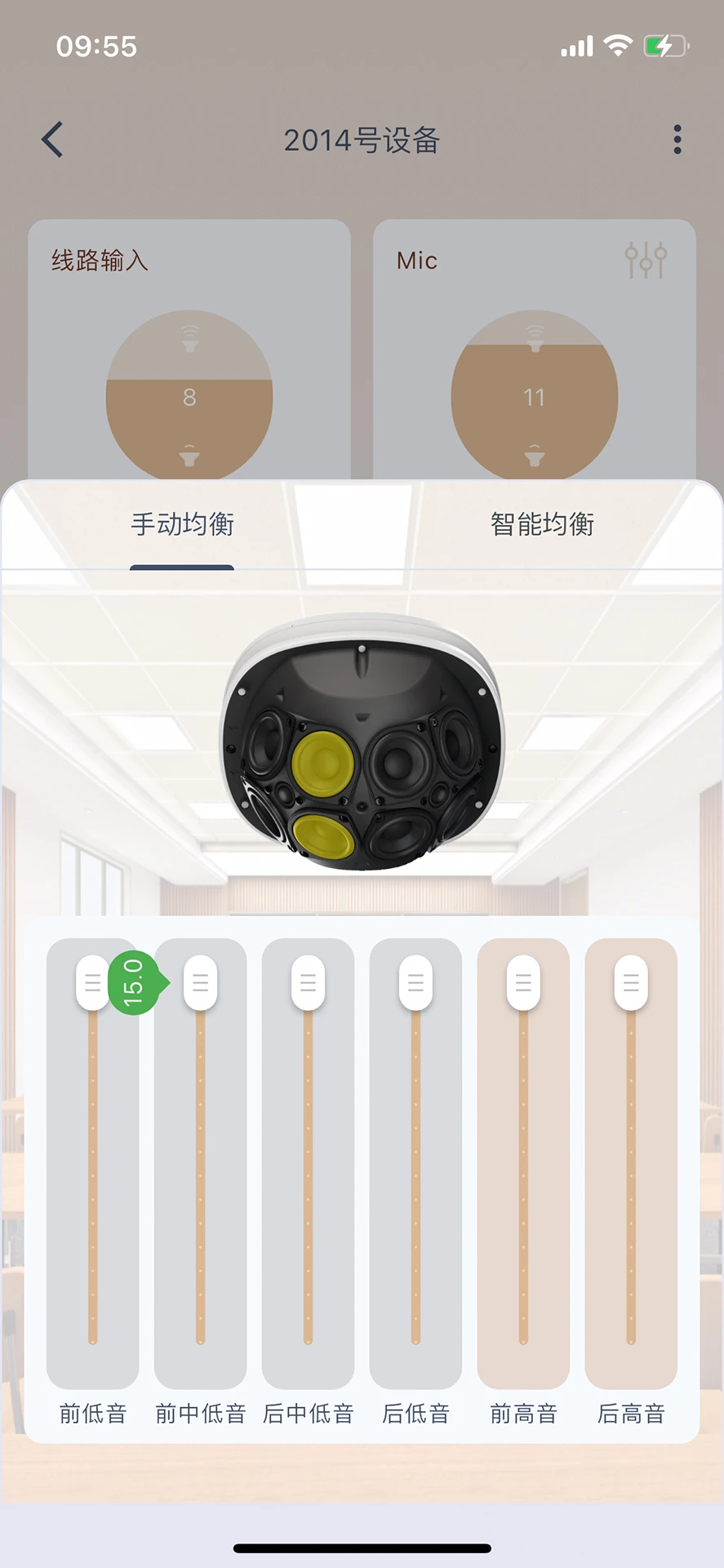 音箱配置工具APP,可以配置音箱输入输出音量EQU段蓝牙等信息,可以通过APP快捷升级音箱设备,查看设备日志等等。