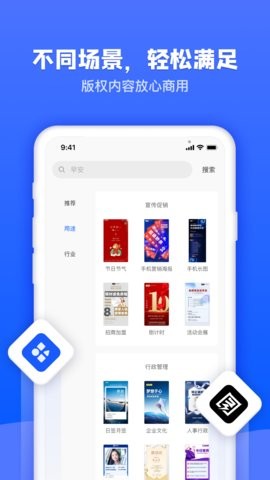海量模版素材库每日更新,紧跟设计潮流趋势,让您的创意永不落伍。只需简单改字换图,就能快速完成专业级的设计作品,大大提升工作效率。覆盖新媒体配图、手机海报、印刷海报、电商淘宝等多种营销场景,满足各类商业需求。内置的AI抠图神器效果出众,操作简单,媲美专业PS大神的处理效果。软件体积小巧,安装包仅几十MB,下载快速且不占用过多手机存储空间。与千图网深度合作,提供上万套商用模板资源,让您的设计更有保障。