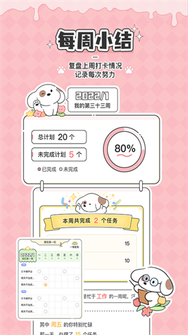 米卡日常app以“周”为核心概念,专注于帮助用户记录待办事项、分配计划并管理日程。通过可爱的互动元素,比如陪伴用户的小狗形象,让制定计划的过程充满乐趣。无论是学习、工作还是生活目标,都能轻松纳入规划,让进步变得可视化。此外,软件还支持多种提醒方式,确保你不会错过任何重要事项,真正做到高效与趣味并存。