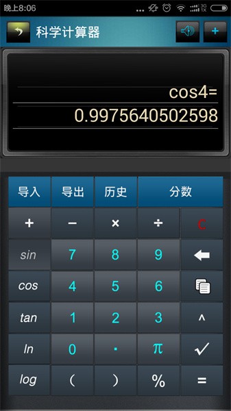 竖屏模式下提供标准计算器界面,支持加减乘除、开方倒数等基础运算,最多可显示12位数字,并具备算术操作、平方根、百分比和记忆功能。横屏时自动切换为科学计算器模式,包含三角函数、反三角函数、指数、对数、幂函数等高级运算功能。智能单位转换覆盖距离、面积、体积、重量等常见单位,满足多样化需求。