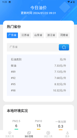 帮帮工具箱免费版提供了丰富多样的实用功能,其中最受欢迎的是实时环境数据查询服务。您可以随时查看全国各省市的空气质量、温湿度等环境指标,为出行和生活提供参考。对于有车一族来说,软件内置的油价查询系统非常实用,不仅能查询历史油价数据,还能实时监测汽油、柴油等油价的变动情况,第一时间将最新油价信息推送给您。这些数据都经过严格核实,确保信息的准确性和时效性,让您做出更明智的决策。