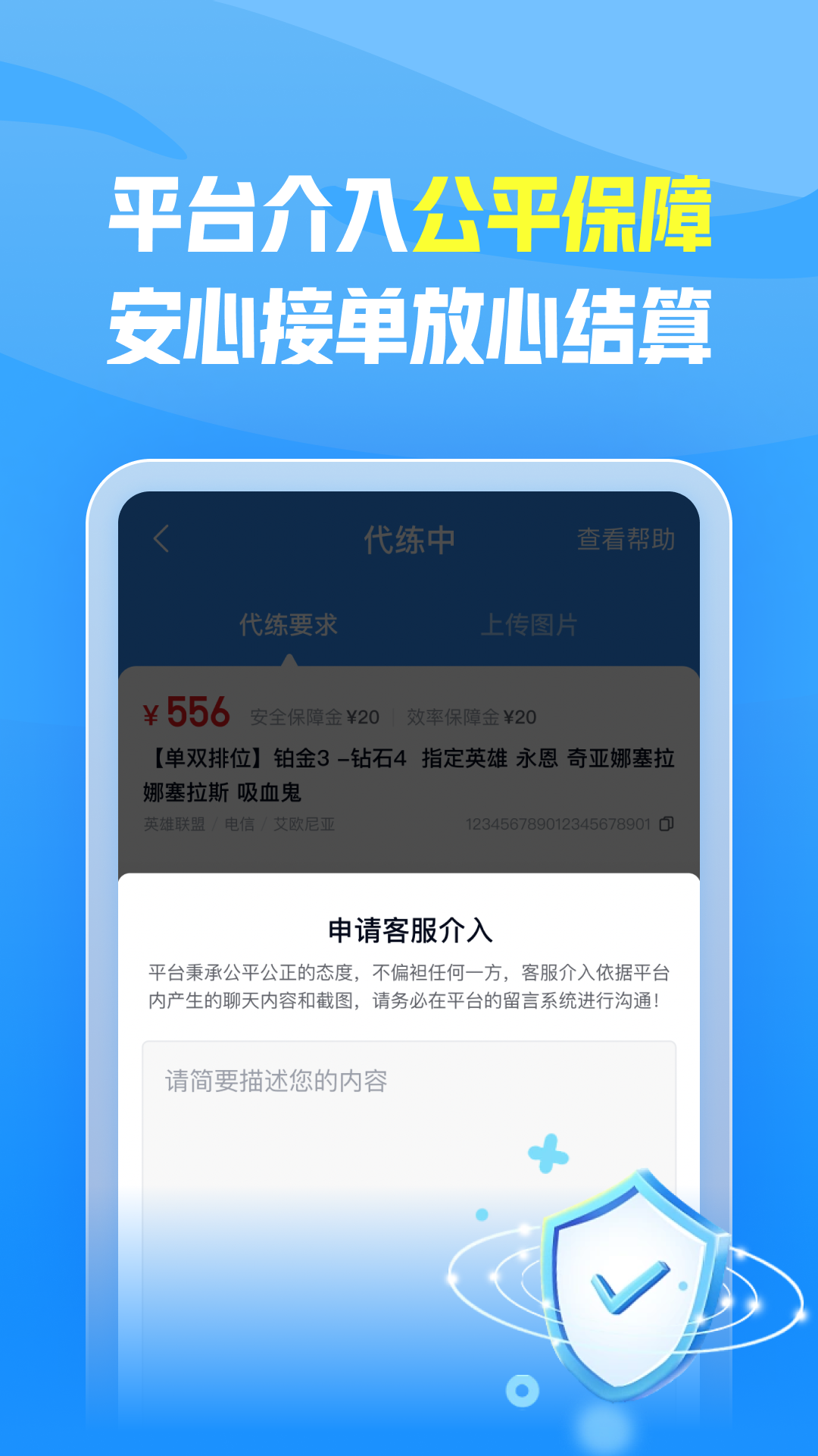 平台建立了完善的仲裁机制,确保每笔订单都能得到公平公正的处理。专业客服团队24小时在线,随时解决交易纠纷。严格的信用评价体系保障了买卖双方的权益,让代练过程更加透明可靠。我们还提供订单保险服务,遇到特殊情况可获得相应赔偿,让您无后顾之忧。