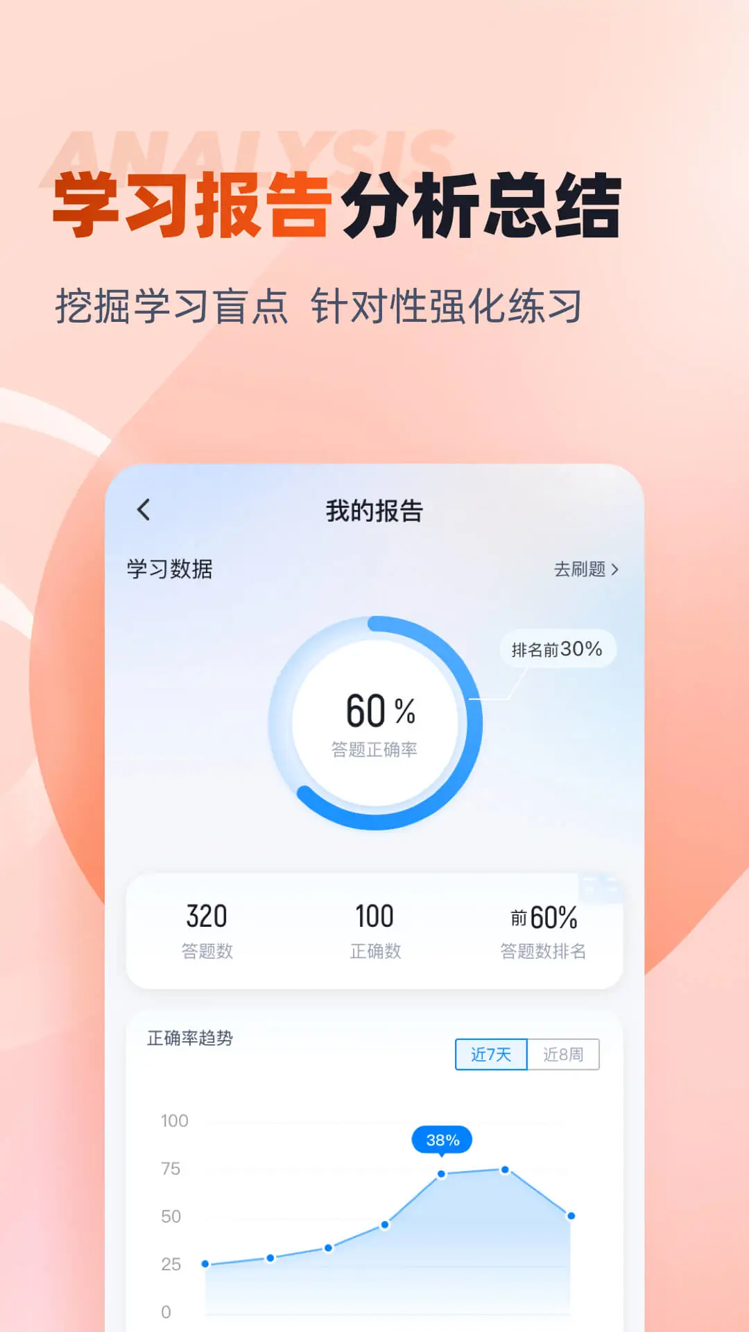 精准分析:通过智能算法评估学习效果,帮助考生快速找到薄弱点。