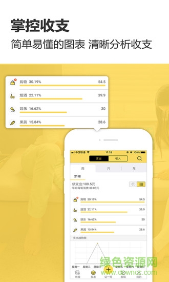 智能统计分析:通过直观的线图和饼图,你可以轻松掌握每周、每月的收支构成,为理财决策提供数据支持。