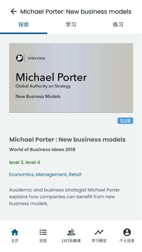 精选全球最新时事视频和文章作为学习素材,内容涵盖商业、科技、文化等多个领域。您可以根据个人兴趣或英语水平筛选内容,每个学习单元都配有专业讲解和互动练习。"Learn"知识库采用模块化设计,让语法和词汇学习变得生动有趣。