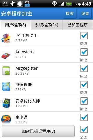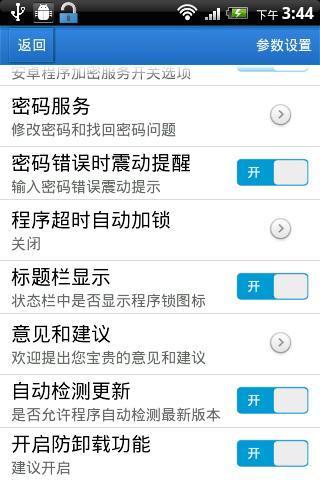 支持开机自动保护功能,确保手机重启后加密程序依然处于保护状态,同时具备防卸载功能,防止他人恶意删除;