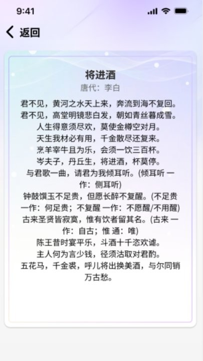 疯狂智多星诗词朗诵平台是一款专为古诗词爱好者打造的手机应用,让您随时随地畅游诗词海洋。这款软件不仅收录了从先秦到明清的经典诗词作品,还特别注重用户体验,通过智能推荐和语音朗诵功能,让诗词学习变得更加生动有趣。无论您是想要提升文学素养,还是单纯享受诗词之美,都能在这里找到属于自己的诗意空间。平台界面简洁大方,操作流畅便捷,让古典文学与现代科技完美融合。