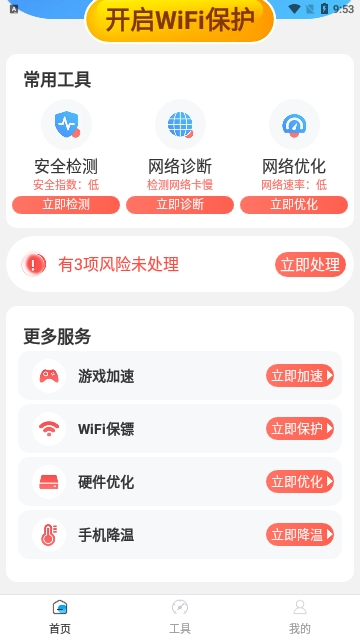全面的网络管理工具集成了网络测速、信号强度检测、流量监控等实用功能,让用户对网络状况了如指掌。革命性的一键连接技术只需轻点屏幕就能自动完成网络搜索、信号评估和安全检测全过程,智能选择最优网络进行连接。