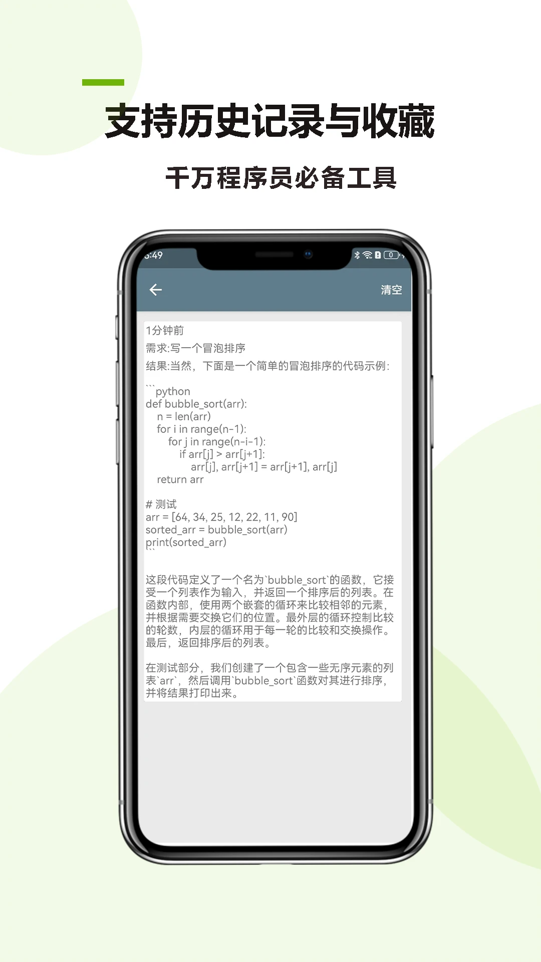 历史记录:所有查询的代码和需求都会自动保存,方便您随时查阅和管理,确保不会遗漏任何重要信息。