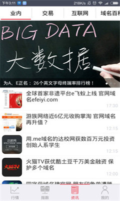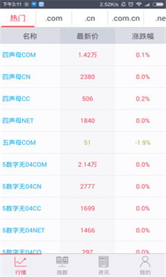 域名行情,快人一步,首创域名比价指数,精选域名行业资讯。软件采用分布式服务器架构,确保行情数据更新速度领先行业水平15秒以上,让用户始终掌握市场先机。