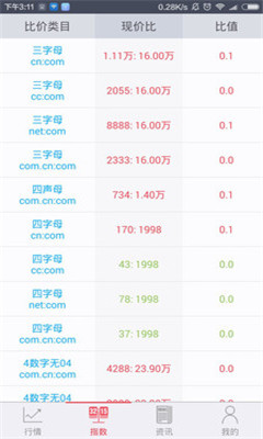 域名比价指数:采用独家算法计算各类域名与com域名的价格比值,帮助用户把握投资时机。