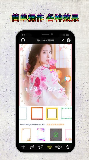 文字编辑功能支持自定义字体库导入,用户可以从上千种字体中选择最适合的样式。背景图片编辑支持多达10张图片的混合叠加,提供15种专业过渡动画效果。长图编辑模式特别优化了内存管理,即使处理超高分辨率图片也能保持流畅。软件内置50多种创新文字特效,如动态流光字、金属质感字等。饰品添加功能包含2000+素材库,支持用户上传自定义素材。纯文字长图生成器可自动优化段落排版,竖排文字编辑则完美适配传统中文排版需求。