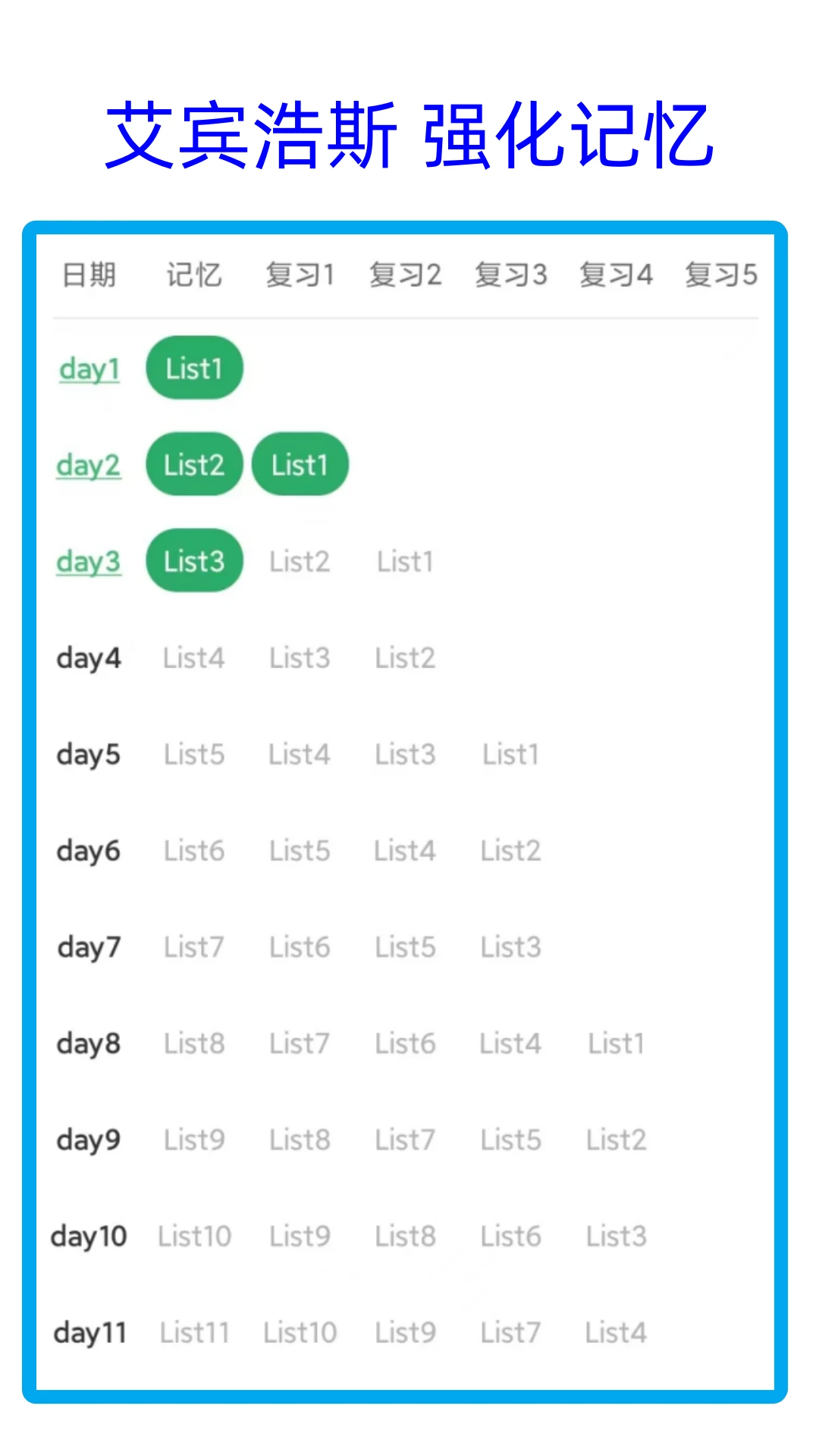 基于艾宾浩斯记忆法,智能规划单词复习时间,提高记忆效率。