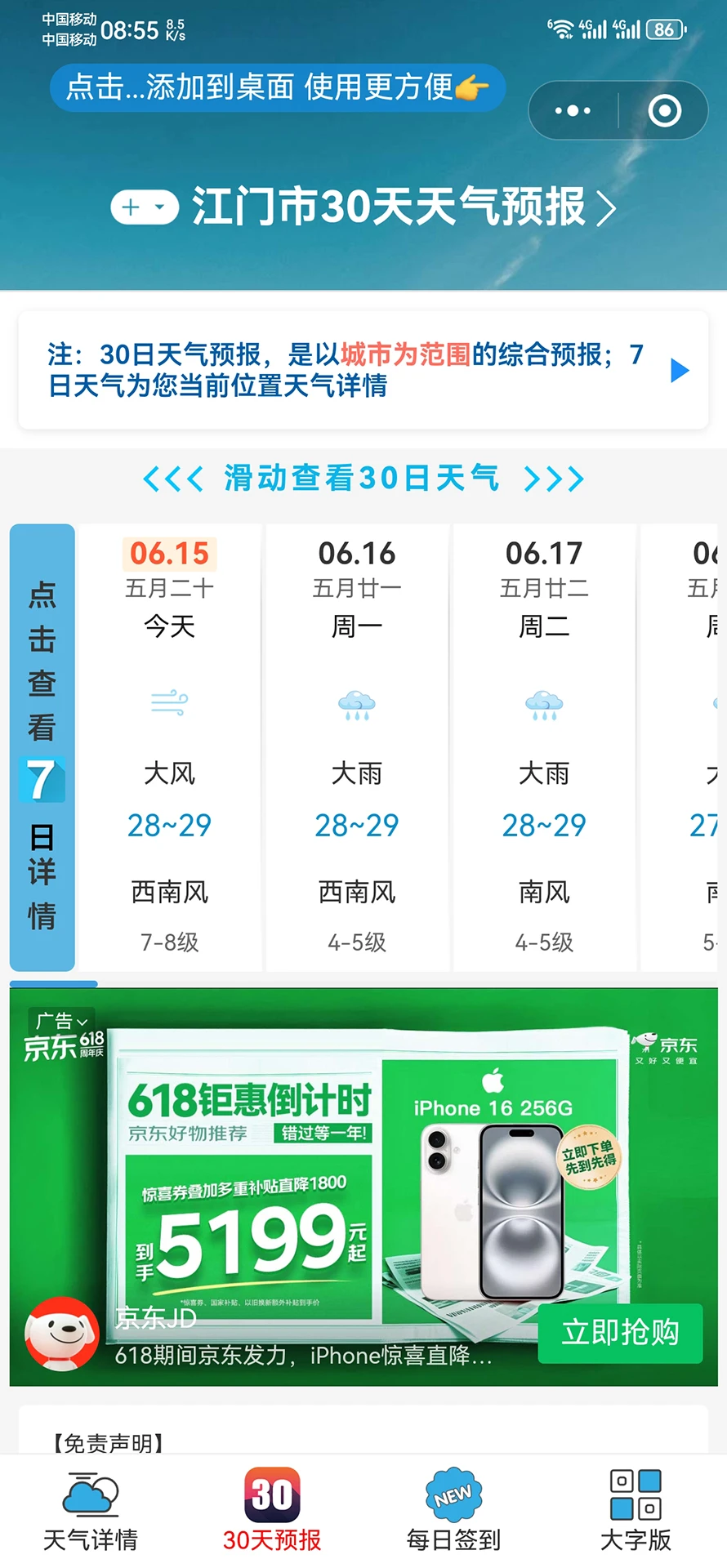 首创"天气时间轴"功能,滑动查看任意时段气象数据