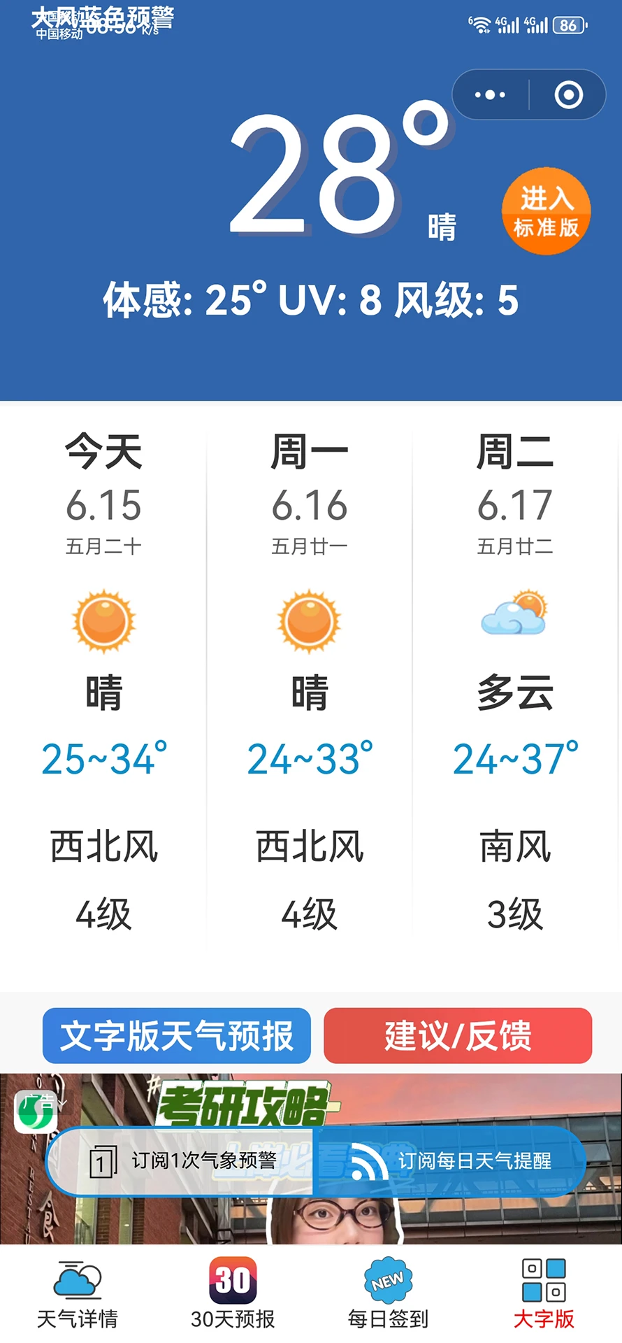 智能穿衣助手,综合体感温度与风力给出着装建议