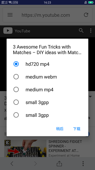 打开视频网址后,软件会智能弹出视频下载选项,提供多种清晰度选择。