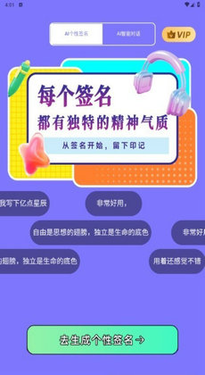 AI个性签名不仅是一款优质的手机工具,更是您打造个人品牌的得力助手。它能够根据您的喜好和需求,智能生成多种风格的签名方案,帮助您做出最佳选择。软件内置强大的AI算法,可以实时生成高质量的签名内容,并支持在线编辑和调整,让您随时随地都能获取满意的签名效果。无论是日常使用还是特殊场合,AI个性签名都能为您提供专业级的签名设计服务。
