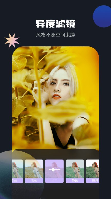 【异度滤镜】超过200款专业级滤镜任您选择,每种滤镜都经过精心调校,能够为照片赋予独特的艺术气质。您还可以自定义滤镜参数,打造专属的视觉风格。