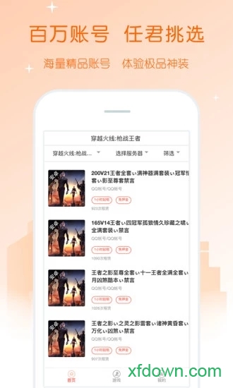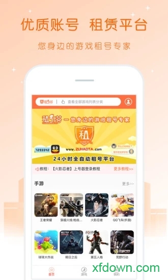1、下载安装租号塔app后,打开应用即可浏览各类可租赁的游戏账号信息。