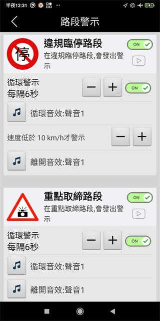 语音定制:每种测速设备类型都可单独设置提醒语音,甚至可以自定义使用音乐作为提醒音效。