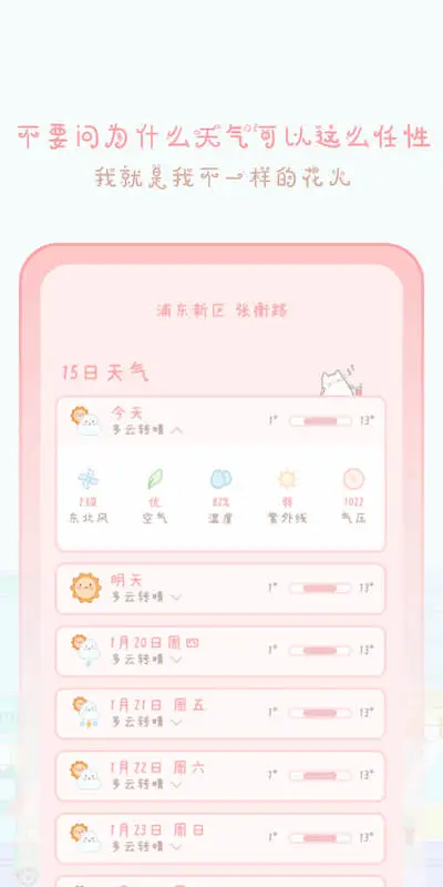 区别于传统天气软件的单调:天气物语用创意设计打破了天气预报应用的常规,为用户带来新鲜感。
