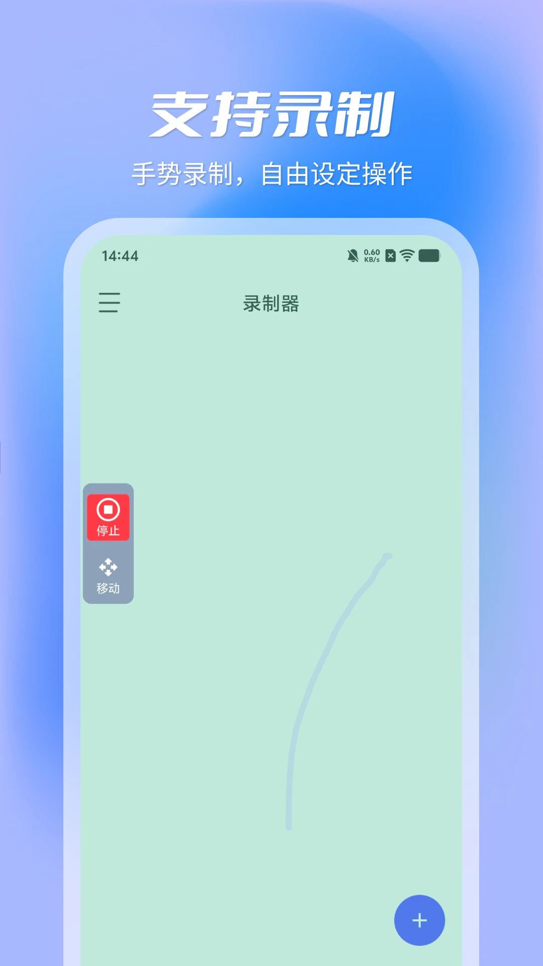 支持手势录制与回放,实现滑动、画圈等复杂操作自动化。